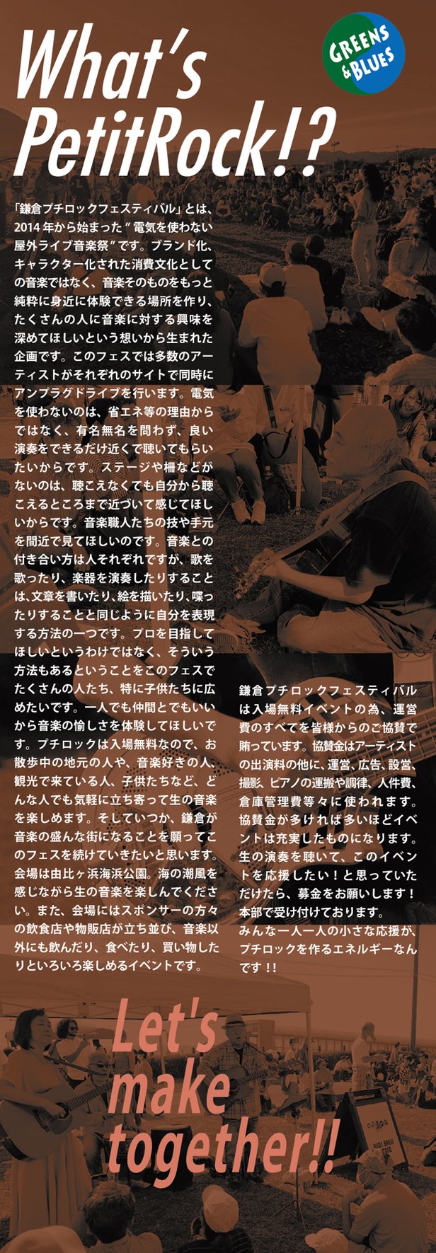 鎌倉プチロックフェスティバルを応援してくれる個人のみなさんからの協賛金を募集しております。詳しくはこちらからご確認ください。